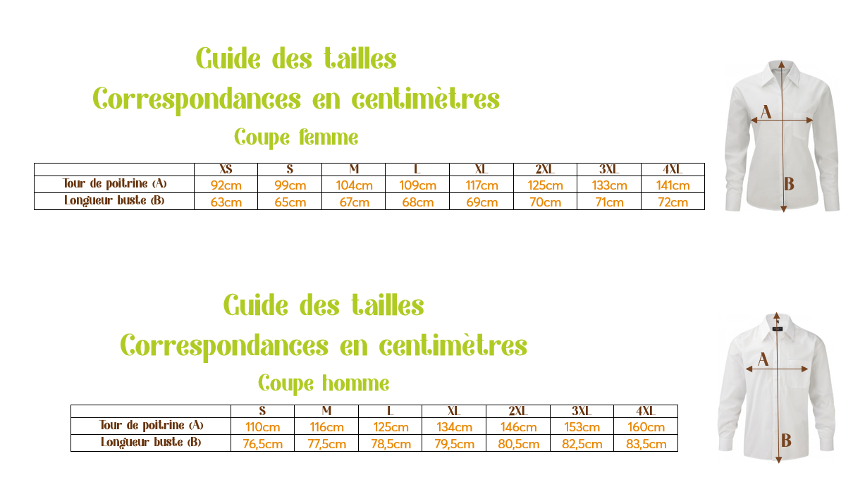 - La coupe Homme est plutôt classique (droite) prend ta taille habituelle. Attention la taille XS est indisponible en coupe Homme.