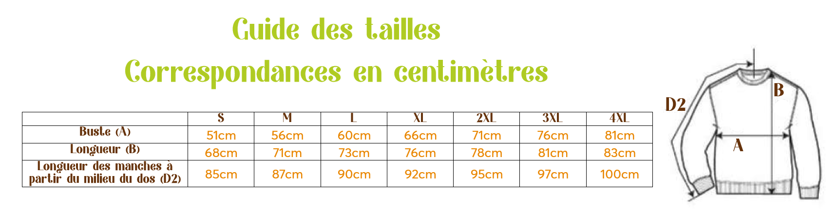 - Info pour les femmes : La coupe Unisexe va rendre le pull un peu plus ample donc si tu souhaites un vêtement près du corps je te conseille de prendre une taille en dessous.